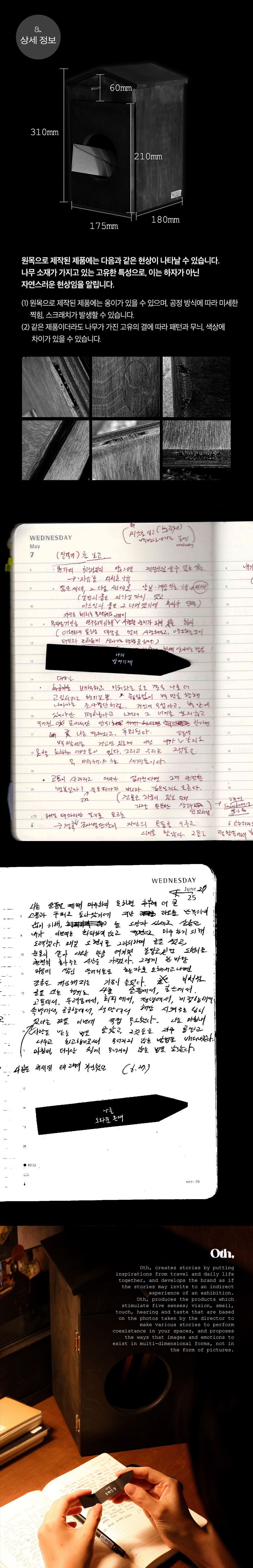 구성품 : 올빼미 배달부 둥지, 30일치 글감 쪽지 묶음 크기 : 310 x 175 x 180 (mm) 소재 : 자작나무, PAL, 지류 *뒷면에는 벽에 걸 수 있는 후크와 바닥면에 미끄럼 방지 패드가 붙여져 있습니다.