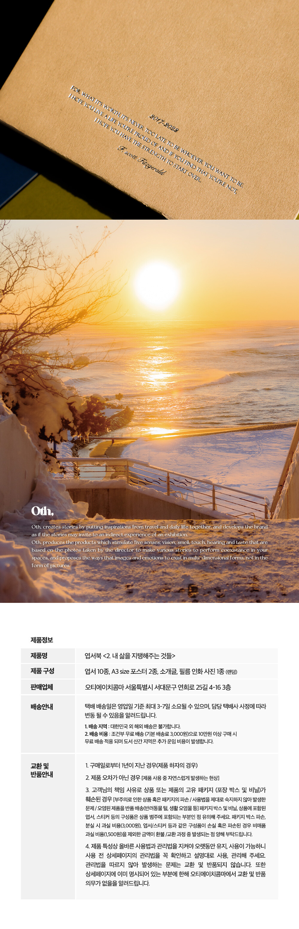 *구성품 엽서 10종, A3 size 포스터 2종, 소개글, 필름 인화 사진 1종 (랜덤) * 엽서북에 포함된 포스터는 4단 접지되어 발송됩니다.