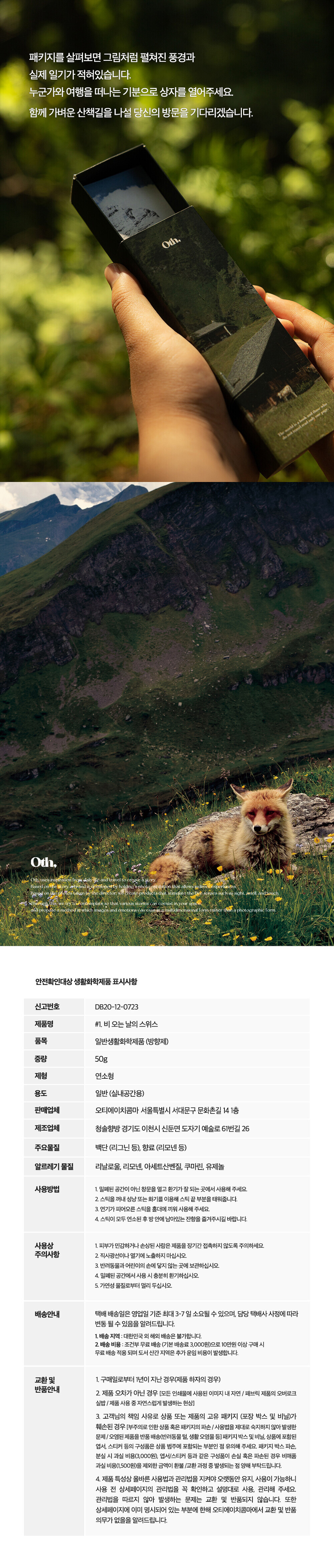 향 : 물에 젖은 잎사귀, 촉촉한 흙냄새, 고즈넉하고 차분한 향