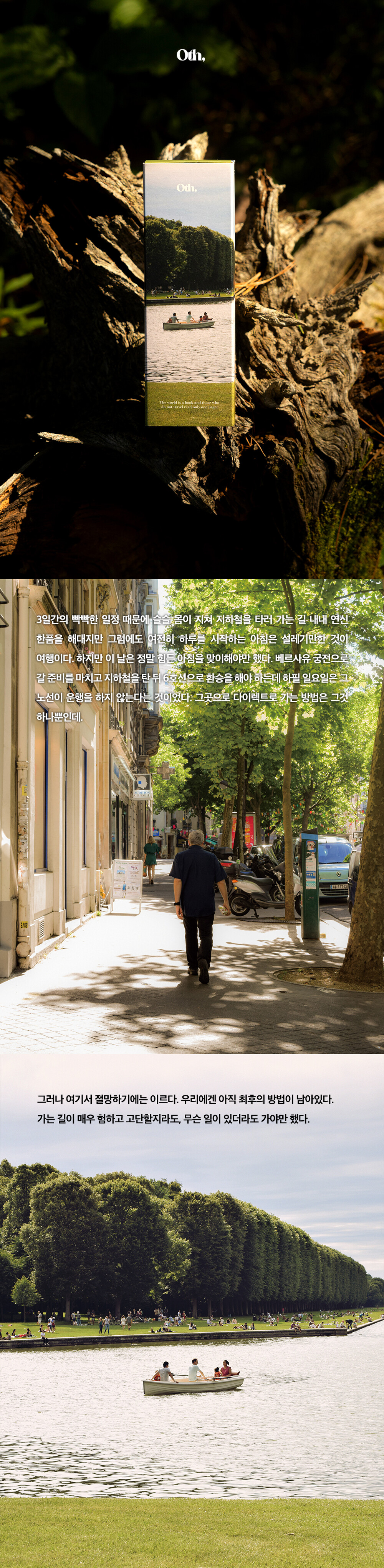 패키지를 살펴보면 그림처럼 펼쳐진 풍경과 실제 일기가 적혀있습니다. 누군가와 여행을 떠나는 기분으로 상자를 열어주세요. 함께 가벼운 산책길을 나설 당신의 방문을 기다리겠습니다.