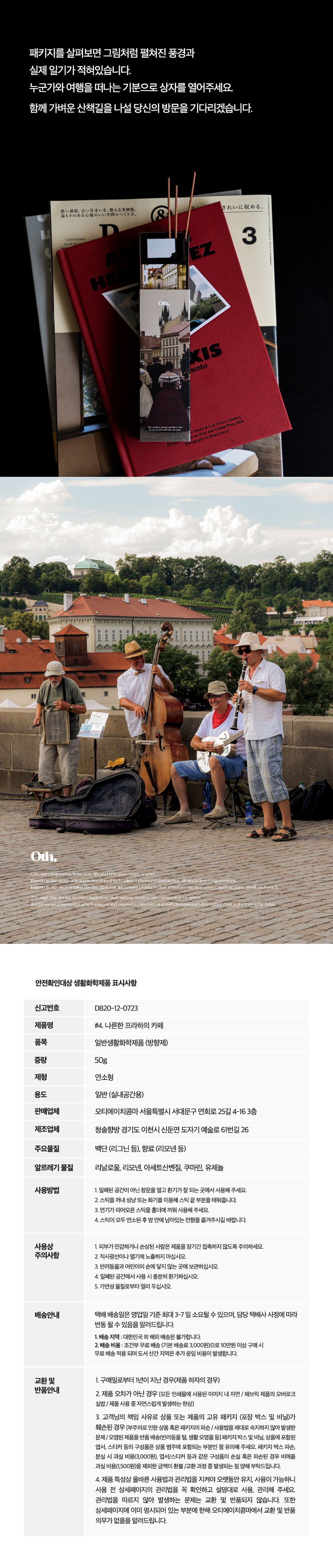 천연 선향 특성상 은은한 향이 피어오릅니다. 태우자 마자 강렬하게 다가오지 않기 때문에 오티에이치콤마의 인센스는 처음 사용하시는 분들께 부담없이 다가갑니다.