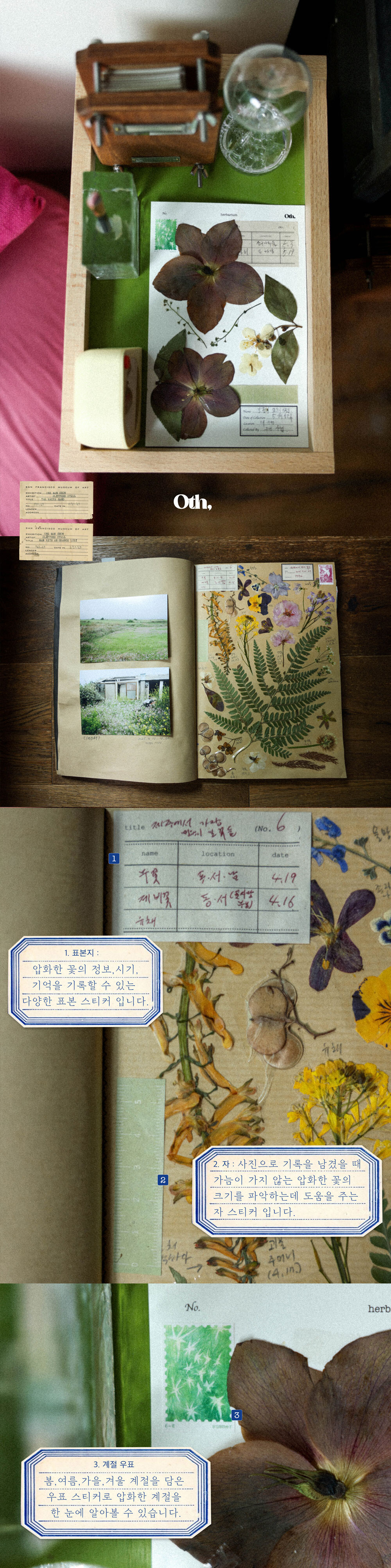 압화한 꽃의 정보,시기,기억을 기록할 수 있는 다양한 표본 스티커 입니다.