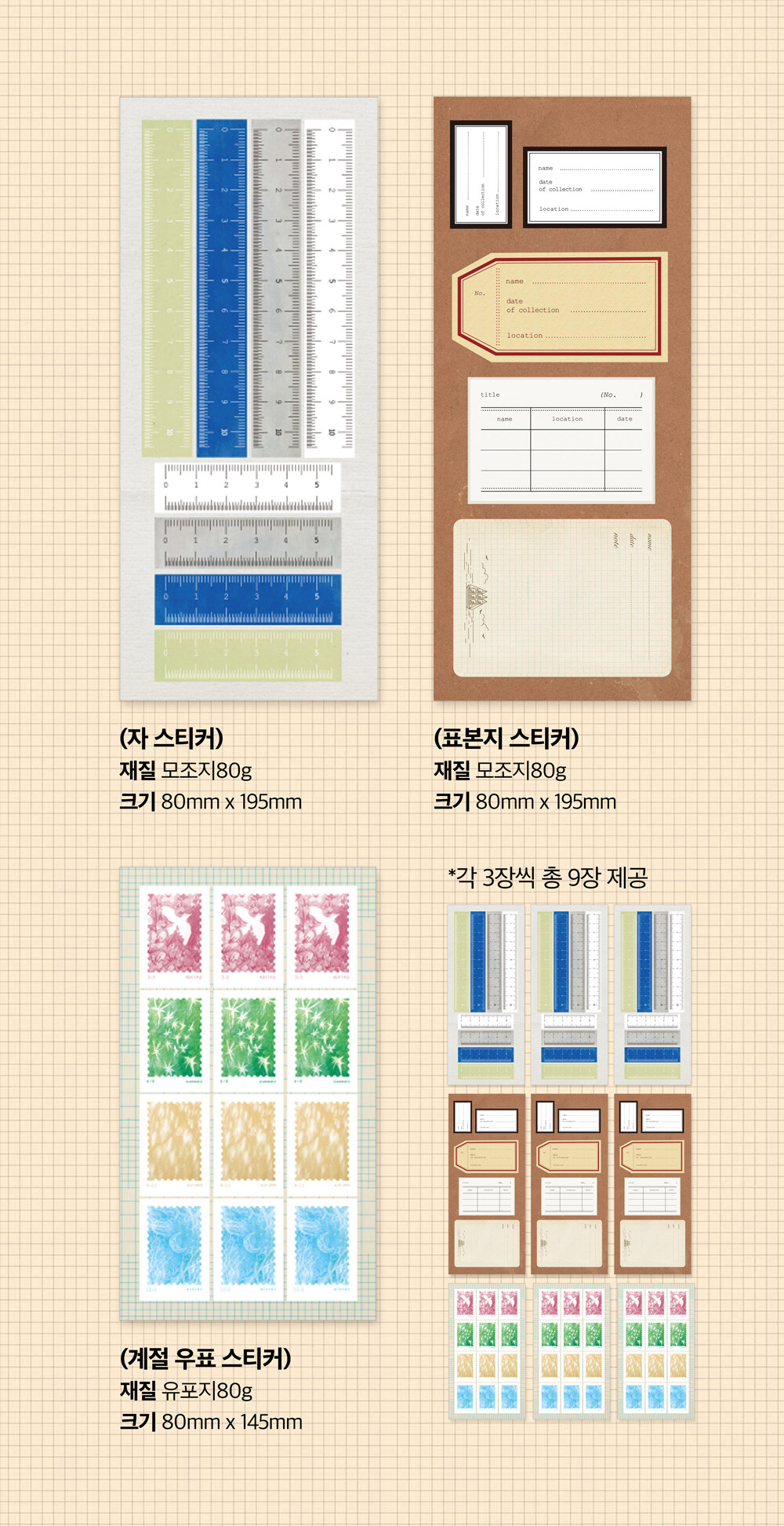 봄,여름,가을,겨울 계절을 담은 우표 스티커로 압화한 계절을 한 눈에 알아볼 수 있습니다.