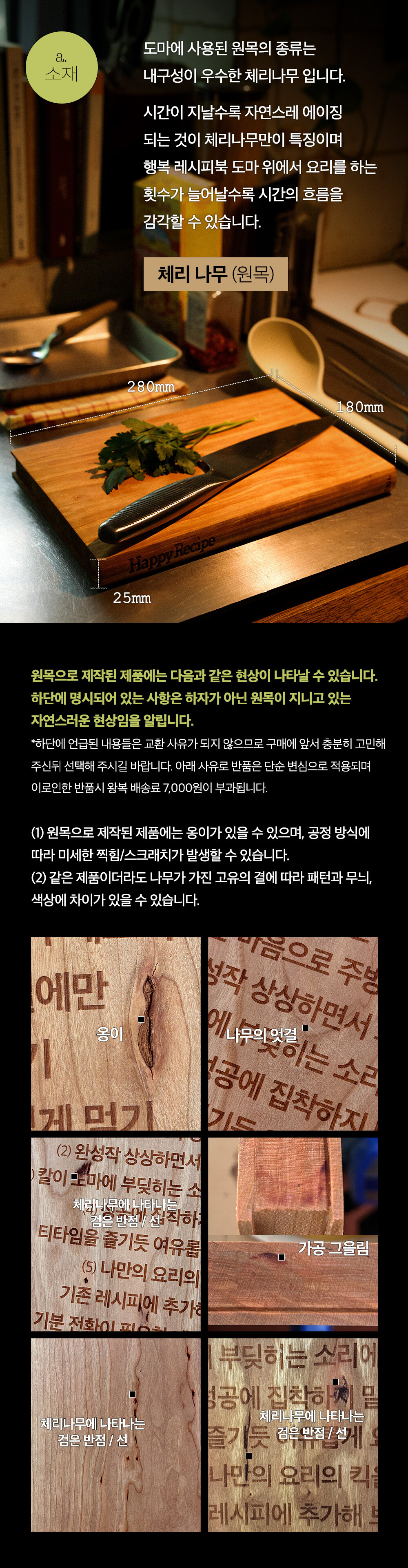원목 도마는 특성상 시간이 지나면 도마의 표면이 건조하고 갈라지거나 거칠어지는 것이 자연스러운 현상이지만